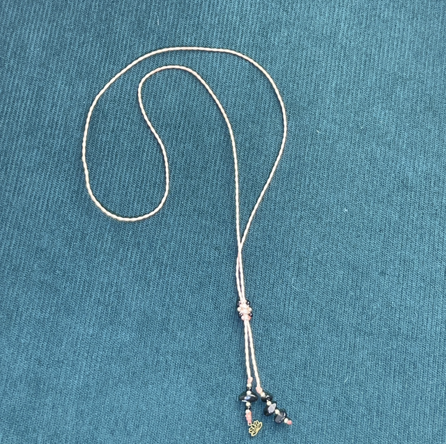 Die Kombination aus rosa, Gold und schwarz macht diese Kette zu einem eleganten Alltagsschmuck.